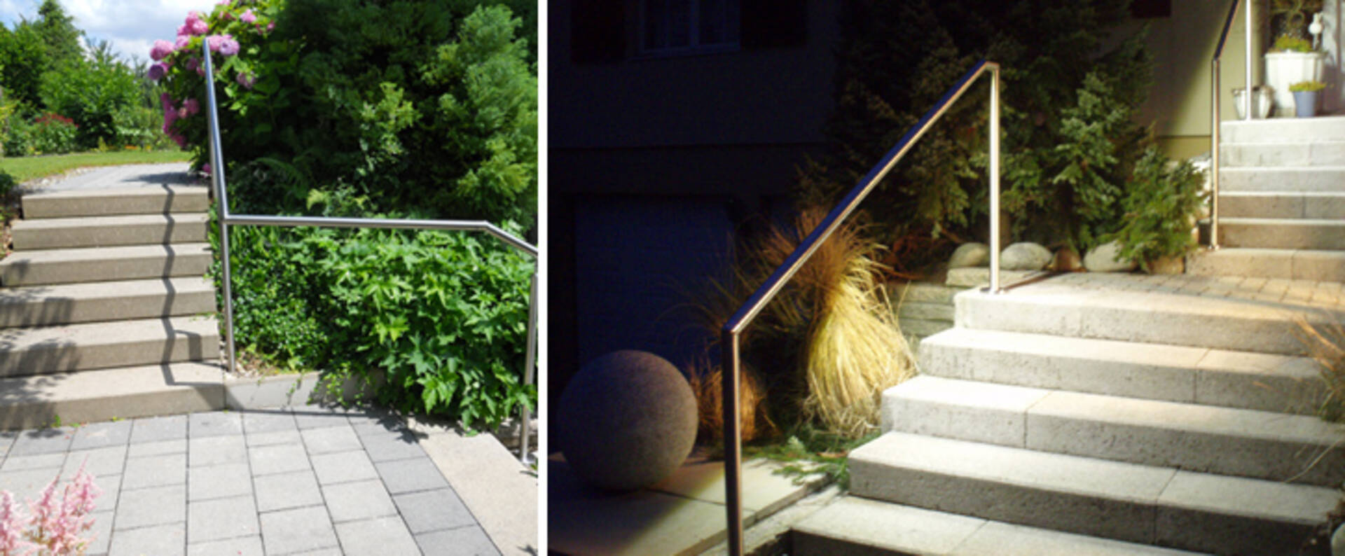 An jeder Art von Treppen und Stufen, die im Garten, entlang der Hausmauer oder vor dem Eingangsbereich verlaufen, stellt ein Edelstahl Handlauf oder ein Staketengeländer eine stilvolle Absicherung dar. Solche Elemente fungieren beim Gehen als komfortable Abstützung und schützen in der Übergangszeit und im Winter, wenn Regen und Glatteis mit einer erheblichen Rutschgefahr verbunden sind, vor Unfällen.
