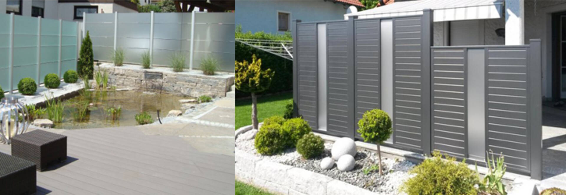 Der Sichtschutzzaun aus Aluminium ist korrosionsbeständig und dadurch äusserst langlebig. Die Aluminiumsichtschutzelemente sind in zwei unterschiedlichen Lamellenvarianten und in allen gängigen RAL-Farben erhältlich.