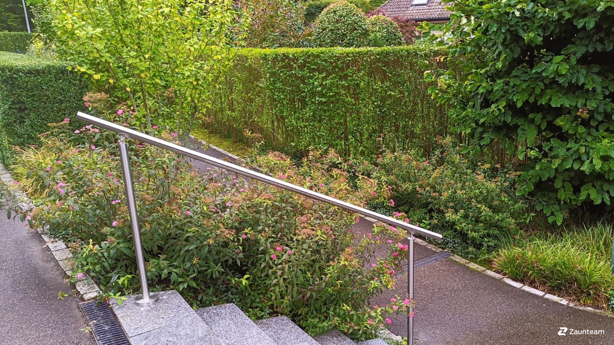 Ein Handlauf setzt im Außenbereich elegante Akzente und ist dank des robusten Materials witterungsbeständig und langlebig. Mit einem Handlauf werden Treppen im Außenbereich auf dezente Weise abgesichert, ohne die stilistische Gestaltung des Gartens oder Hauses zu verändern. In Kombination mit einem Geländer sorgt ein Handlauf nicht nur für zusätzliche Sicherheit, sondern auch für ein harmonisches Gesamtbild. Unsere Modelle aus Edelstahl behalten durch die porenfreie und glatte Oberfläche viele Jahre ihr makelloses Aussehen und sind äußerst pflegeleicht.