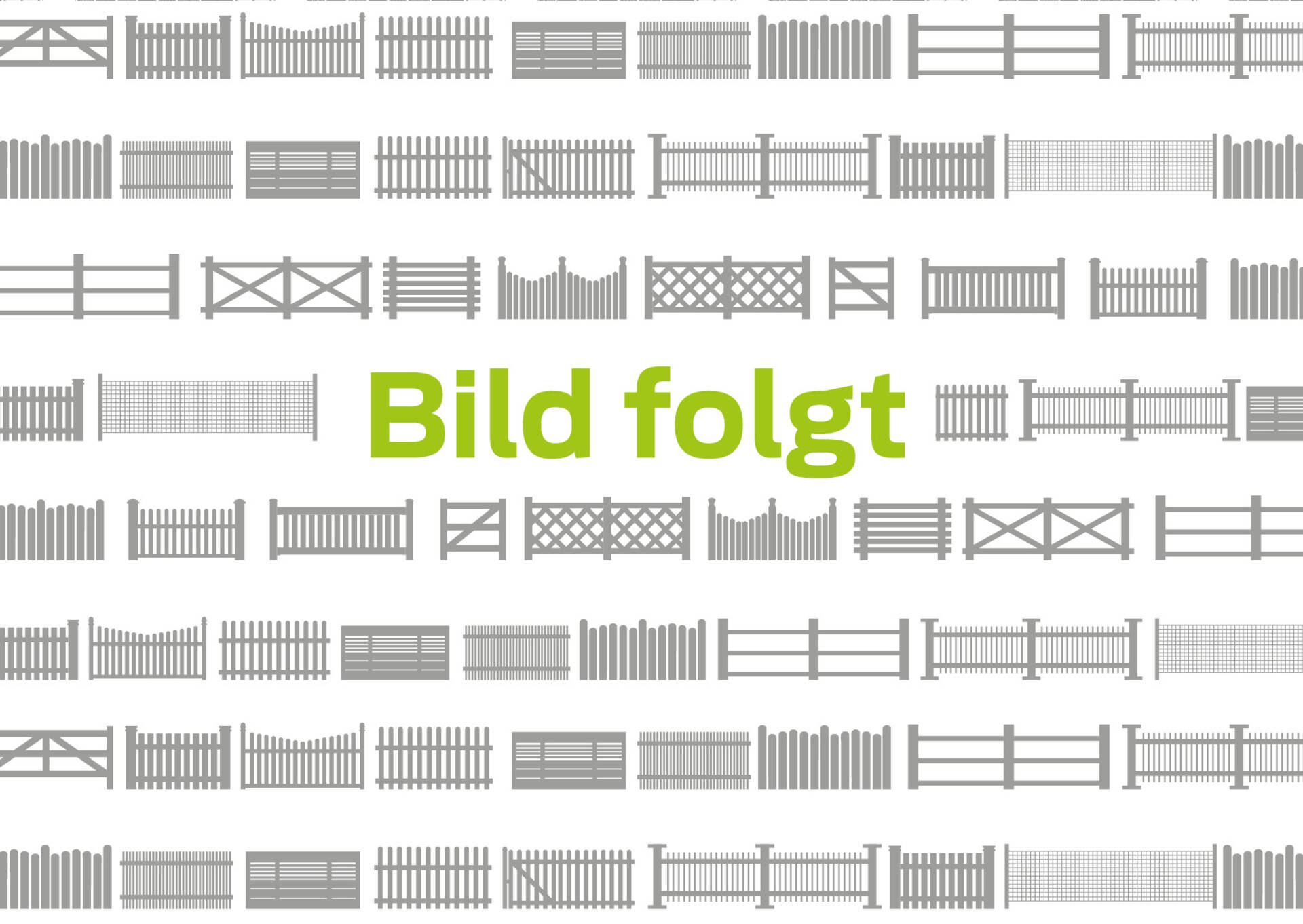 Ein moderner Design-Zaun aus Metall. Der Decorzaun Bologna überzeugt durch seine oben angebrachten Halbkreisornamente, die vertikal im Gitter integriert sind. Das Zaunmodell kann nach Belieben durch Verzierungen der Pfostenspitzen ergänzt werden.