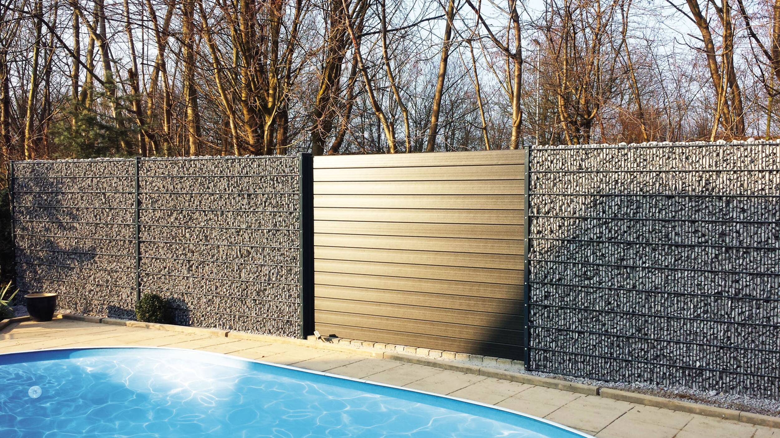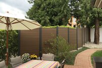 Der Schallschutz WPC verbindet zeitgemäßes Design mit langlebiger Materialqualität. Hergestellt aus einem hochwertigen Holz-Kunststoff-Verbund (WPC) bietet er effektiven Lärmschutz, ist splitterfrei, farbbeständig und nahezu wartungsfrei. Die glatte, moderne Oberfläche passt zu unterschiedlichsten Architektur- und Gartendesigns.