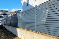 Der Modern Aluzaun wird bestimmt durch seine geradlinigen Formen, die sich besonders zur modernen Architektur anpassen. Die Lamellen sind in verschiedenen Breiten und Abständen, vorwiegend horizontal, auf Wunsch aber auch vertikal lieferbar. Sie sind in verschiedenen Modellen, Formen und in allen gängigen RAL-Farben erhältlich. Dadurch passen sich die Zaunelemente den verschiedenen Haustypen und Baustilen problemlos an. Das Aluzaunsystem hält ein Leben lang, ohne Kompromisse und es bedarf keinerlei Pflegeaufwand.