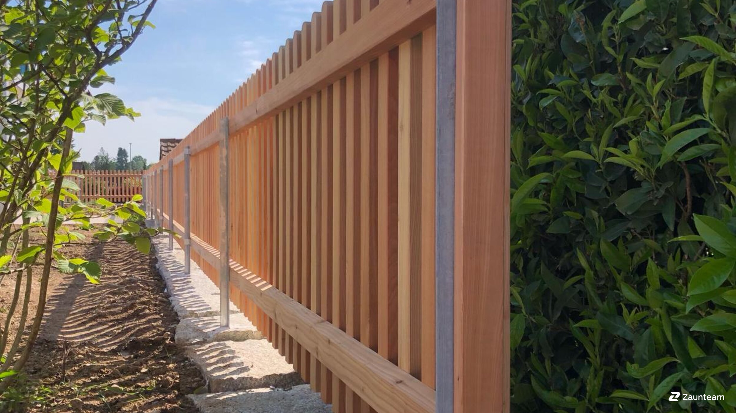 Ein Staketenzaun aus Lärchenholz bietet durch seinen hohen Harzgehalt einen natürlichen Schutz gegen Pilze und Fäulnis und braucht deshalb keinen chemischen Holzschutz. Das langsam gewachsene Holz ist wegen seiner hohen Festigkeit und Härte hervorragend für den Aussenbereich geeignet.