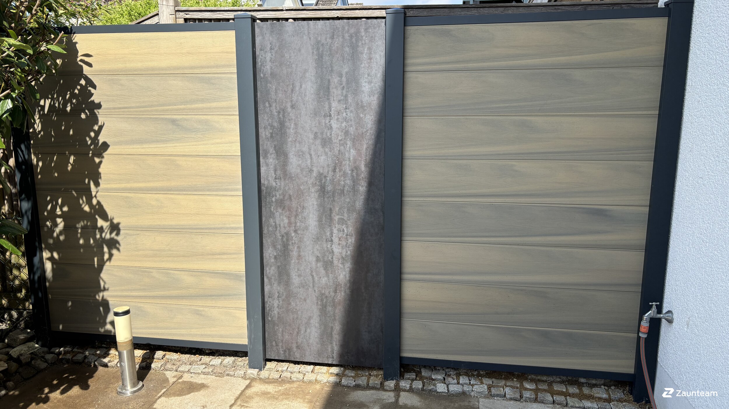 Die modulare Bauweise dieser Sichtschutzmodelle mit den ästhetisch wirkenden Glas- und Alu Einsätzen bietet eine Vielzahl an Gestaltungmöglichkeiten.