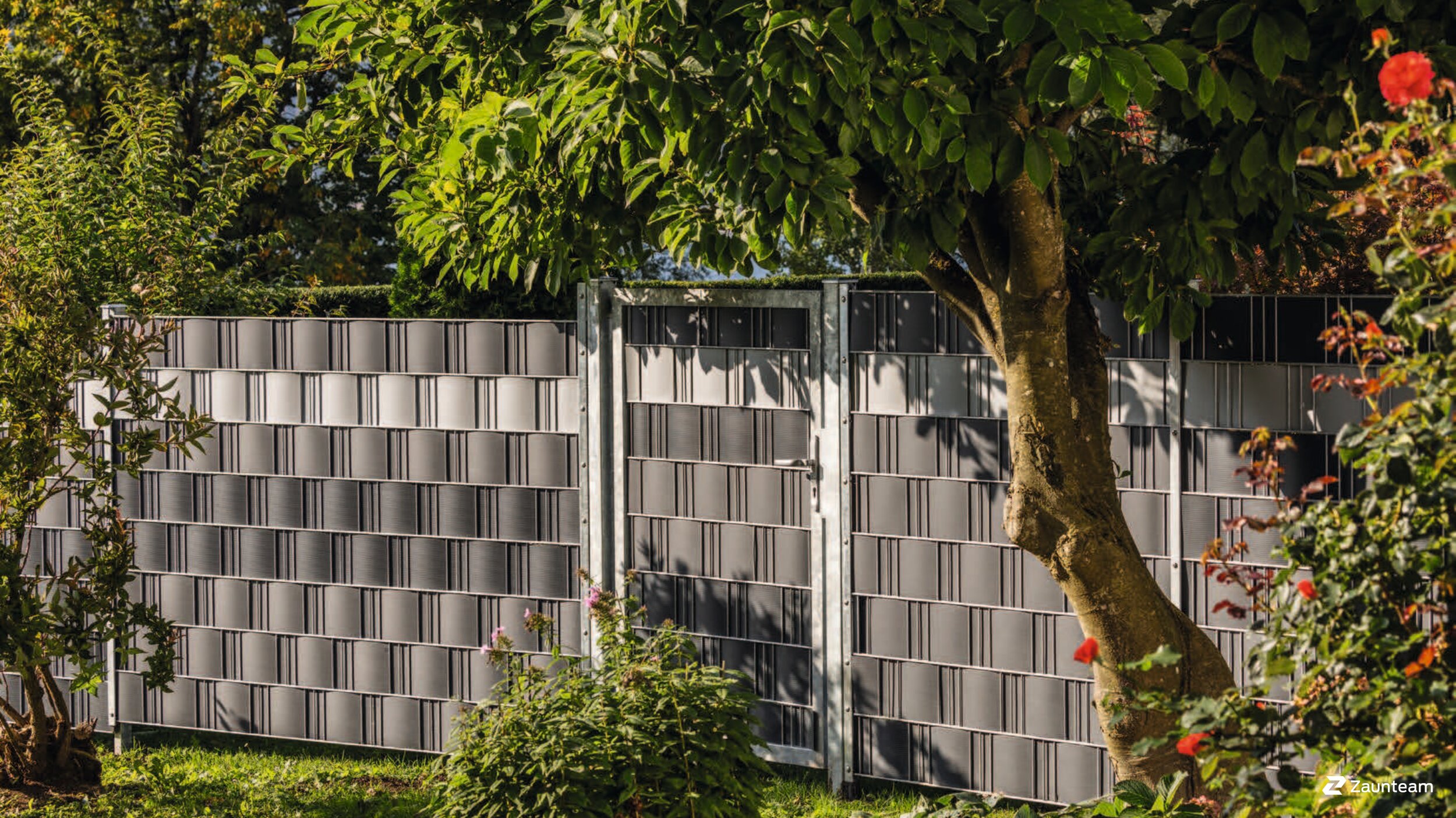 Der Flecht-Sichtschutz setzt auf die Vorteile von Metall und Kunststoff. Ebenso starke wie flexible Streifen werden in unser bewährtes Doppelstabmattenzaun-System eingeflochten. Zahlreiche Farben und auch ganze Motive sind lieferbar. Setzen Sie Akzente durch Dekorstreifen in einer Kontrastfarbe.