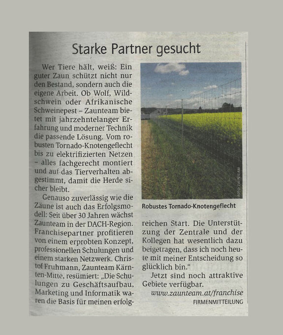Leider gibt es noch keinen Zaunteam Standort in Ihrem Gebiet. Interessiert an einer erfolgreichen Selbständigkeit?
