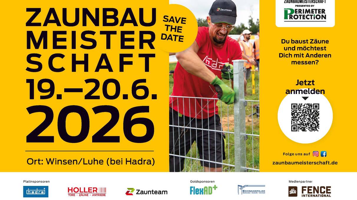 Am 19./20. Juni 2026 wird Winsen/Luhe zum Treffpunkt für alle Fans des Handwerks: Die Zaunbaumeisterschaft 2026 präsentiert von Perimeter Protection geht an den Start – diesmal an einem besonders attraktiven Austragungsort auf dem Gelände von Hadra, Hanseatischer Drahthandel GmbH. Nach mehreren erfolgreichen Austragungen hat sich der Wettbewerb längst als feste Größe etabliert und genießt mittlerweile echten Traditionsstatus in der Zaunbaubranche.